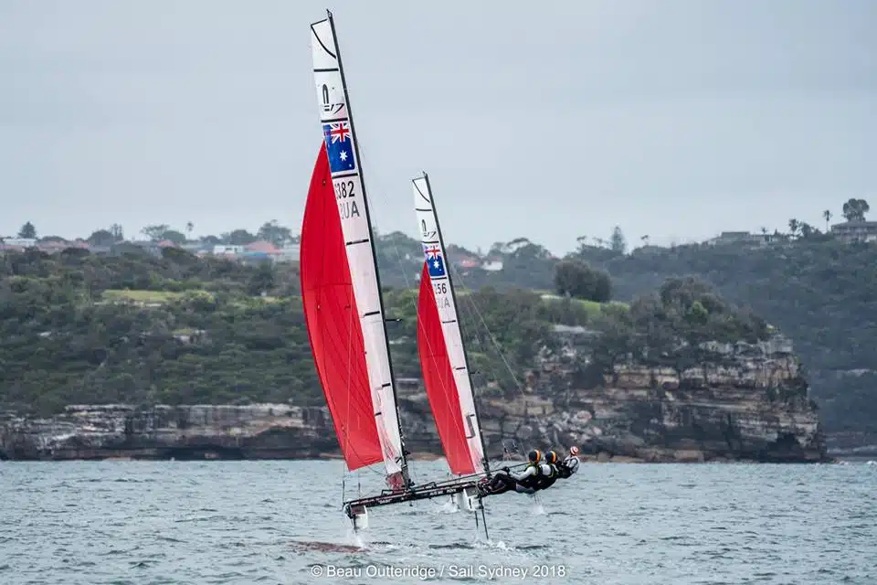 En Nacra 17, les deux équipes sortant des Jeux Olympiques Jason Waterhouse/Lisa Darmanin AUS et Gemma Jones/Jason Saunders NZL dominent la flotte.
